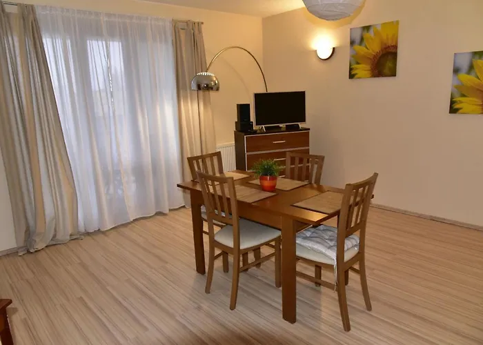 Апартаменты располагают электрочайником, холодильником и кухонной утварью, что дает гостям возможность самостоятельно готовить себе еду. Вы можете отправиться в ресторан Baron Pub & Restaurant, что расположен в 200 метрах от апартаментов и предлагает блюда европейской кухни. До аэропорта <<Солидарность>> Щецин-Голенюв можно доехать за 54 минут. Здесь есть возможность попробовать пешие прогулки, езду на велосипеде и рыбалку.